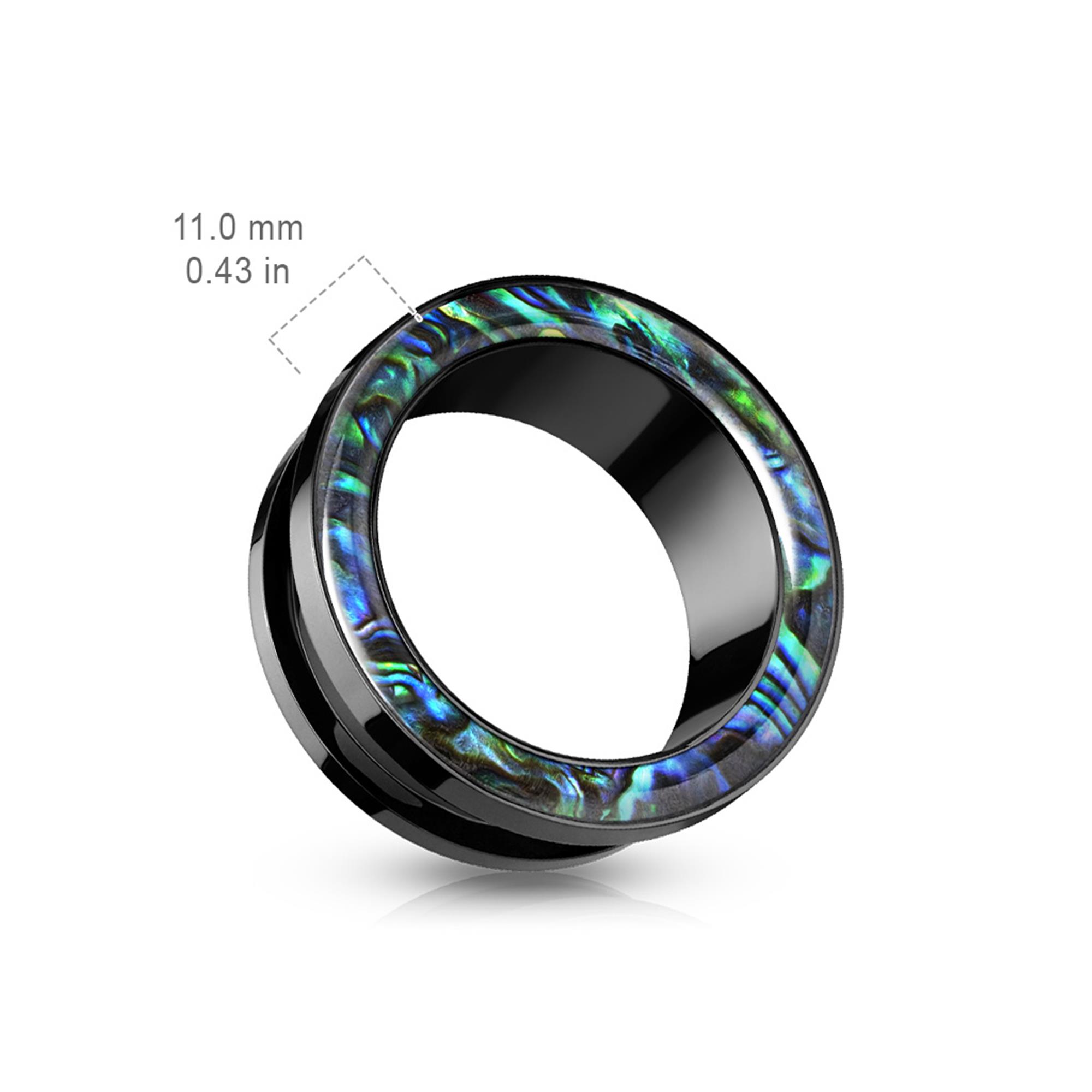 Abalone Rimmed Black PVD Over 316L Surgical Steel Screw Fit Tunnel
