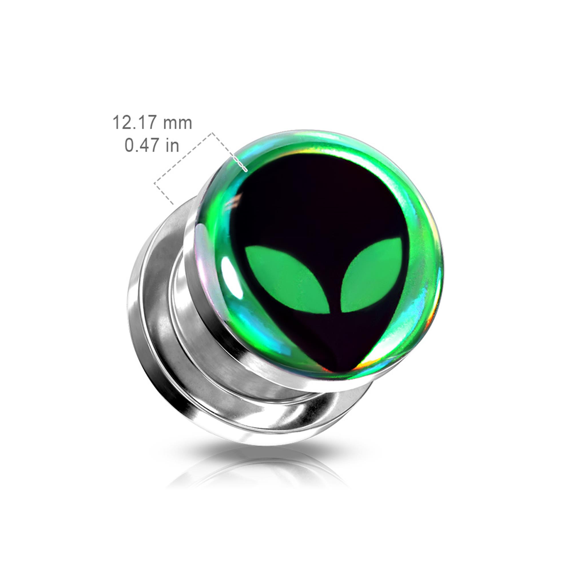 Alien Hologram 316L Surgical Steel Screw Fit Flesh Tunnel Plug