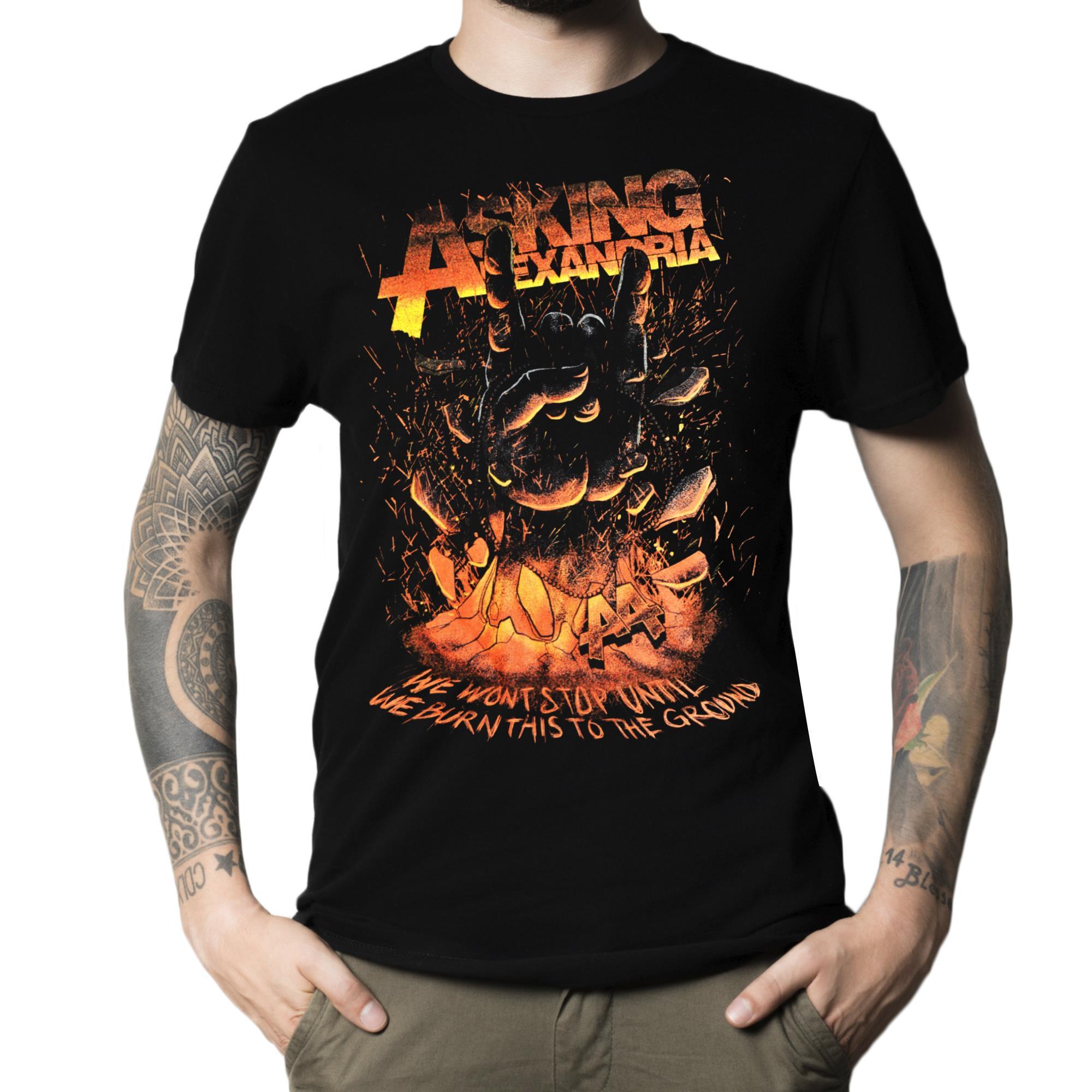 metal hand, a bold band logo, and 'We won't stop till we burn this to