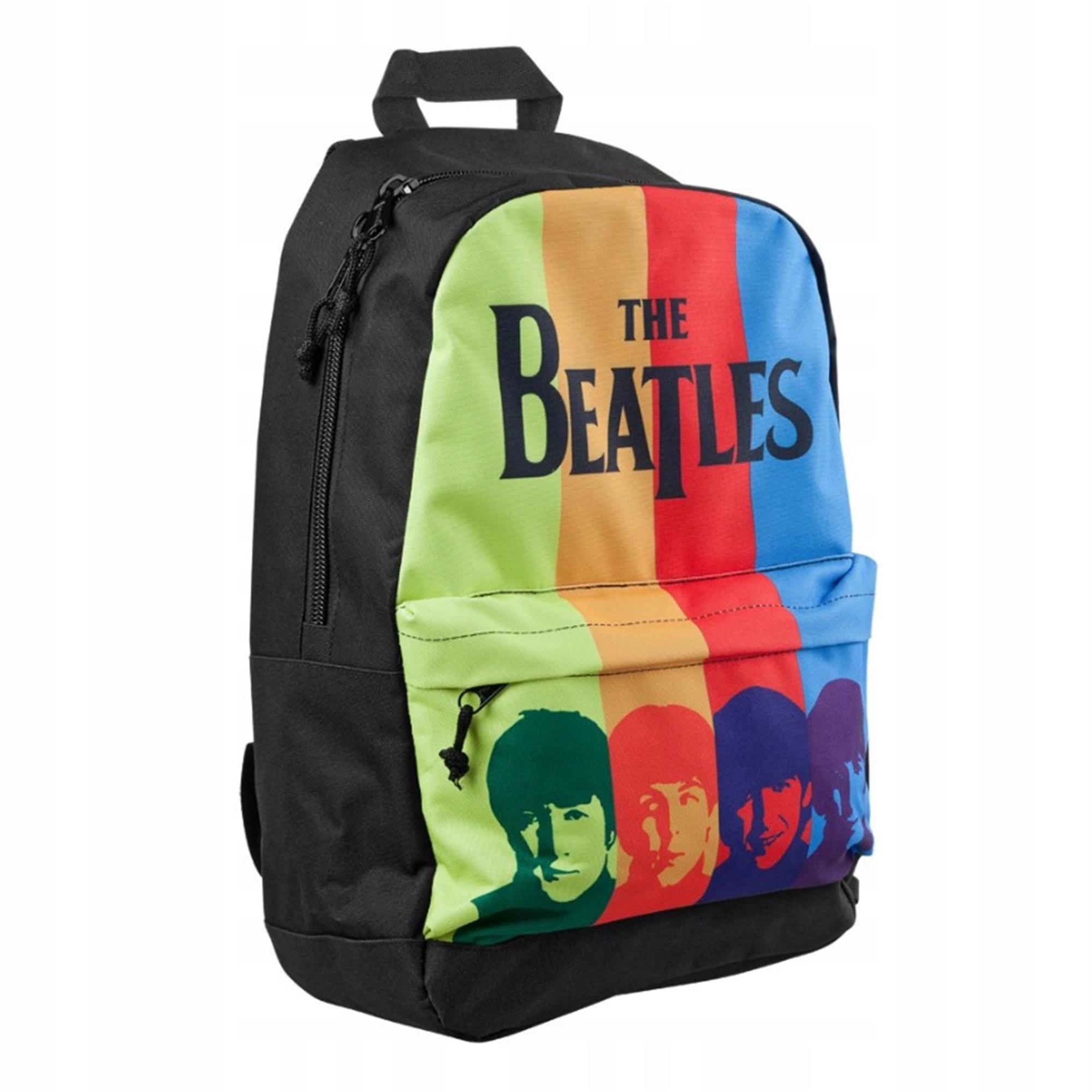 This COLLECTABLE Beatles backpack the Fab Four circa the 1960s with a punchy rainbow print. Crafted with resistant polyester fabric and lining and featuring a spacious front pocket, internal divider, and adjustable padded straps.