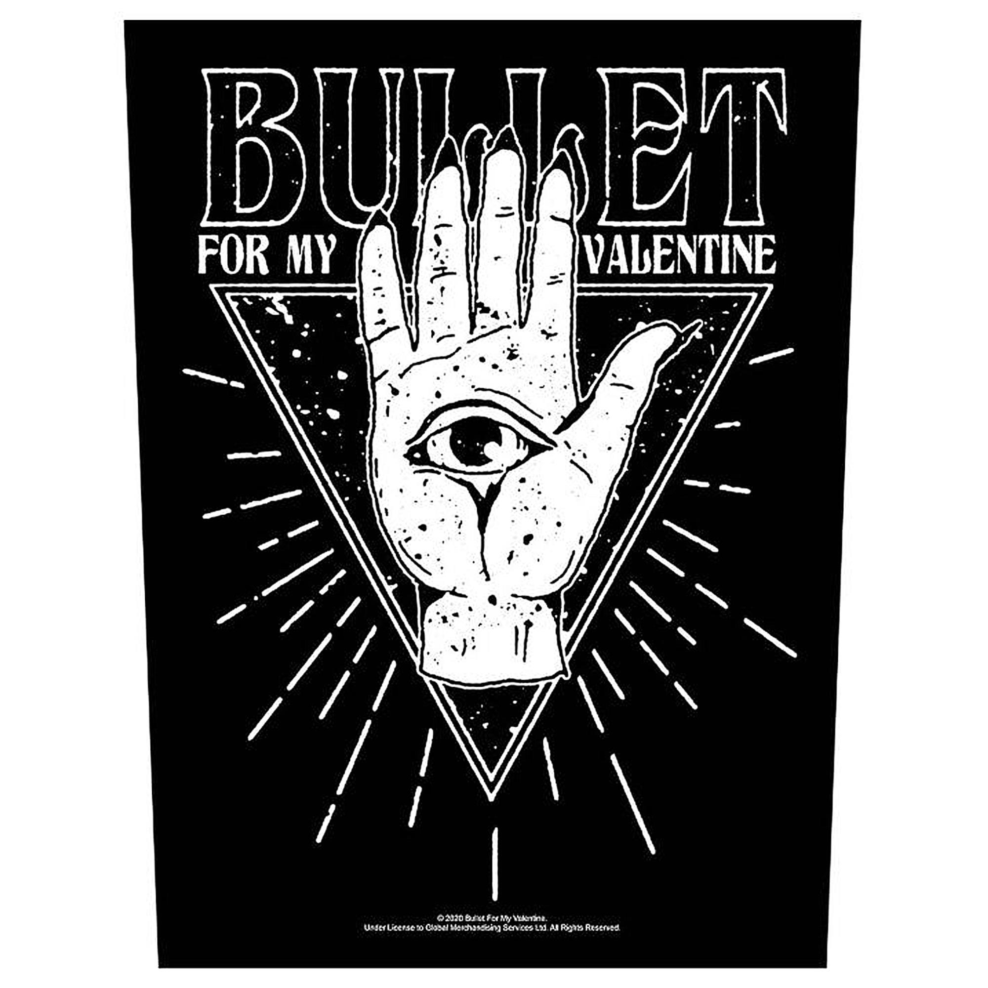 This excellent Bullet For My Valentine back patch features the artwork of an evil eye gazing from an open palm.