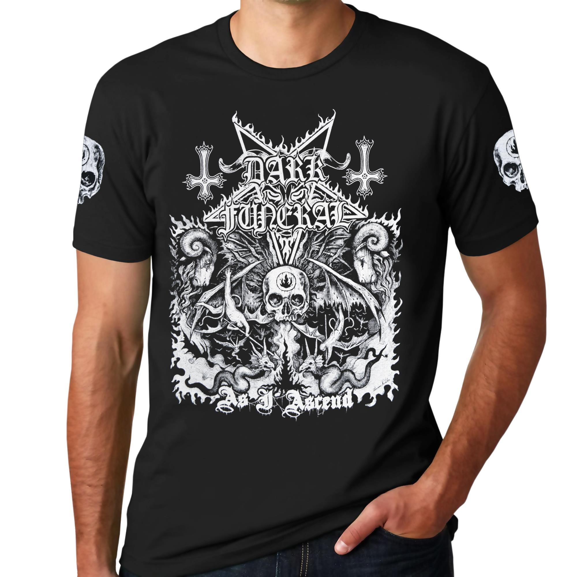 This WICKED t-shirt features a gory pentagram and skull scene inspired by the Dark Funeral song "As I Ascend."