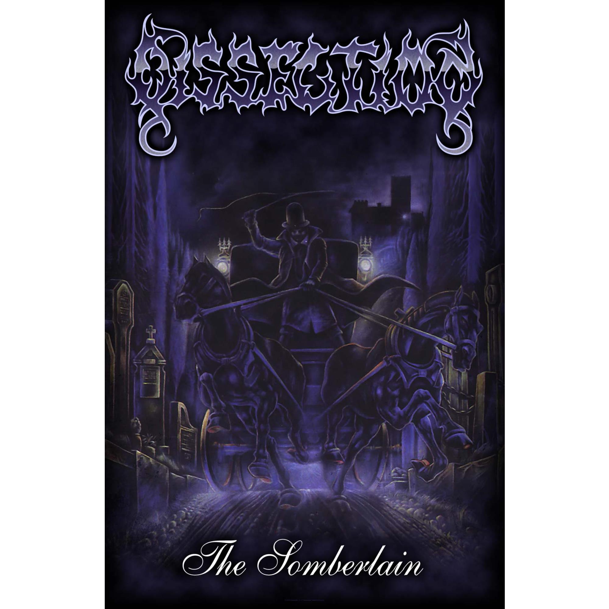 A poster flag with the vibrantly eerie cover art from the 1993 debut album, The Somberlain by the Swedish Black Metal band, Dissection. Sputnikmusic described the album as "unrelenting, epic, melodic, heavy, somber, brutal, emotional, and technical all in one."