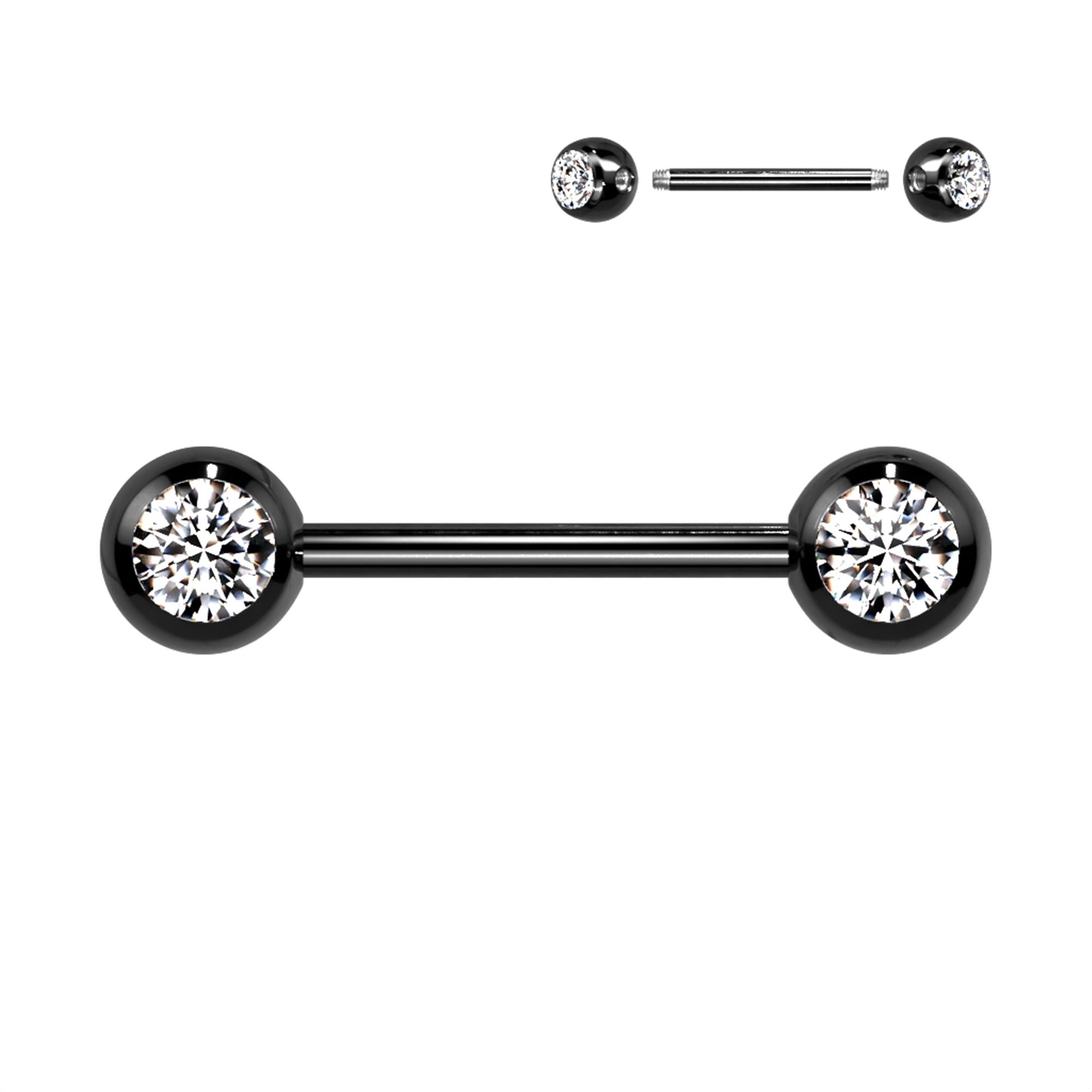 NIPPLE BAR 14GA - DOUBLE CZ TITANIUM IP 316L