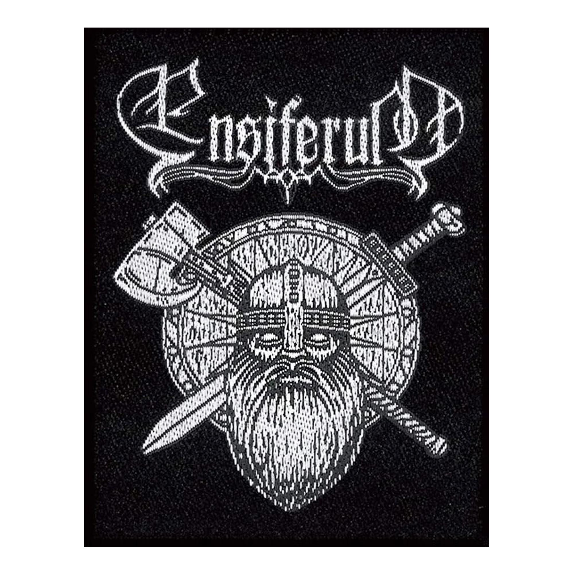 Artwork from the band ENSIFERUM, a Finnish folk metal band from Helsinki, depicting a Viking, superimposed on a shield an axes and a swords.