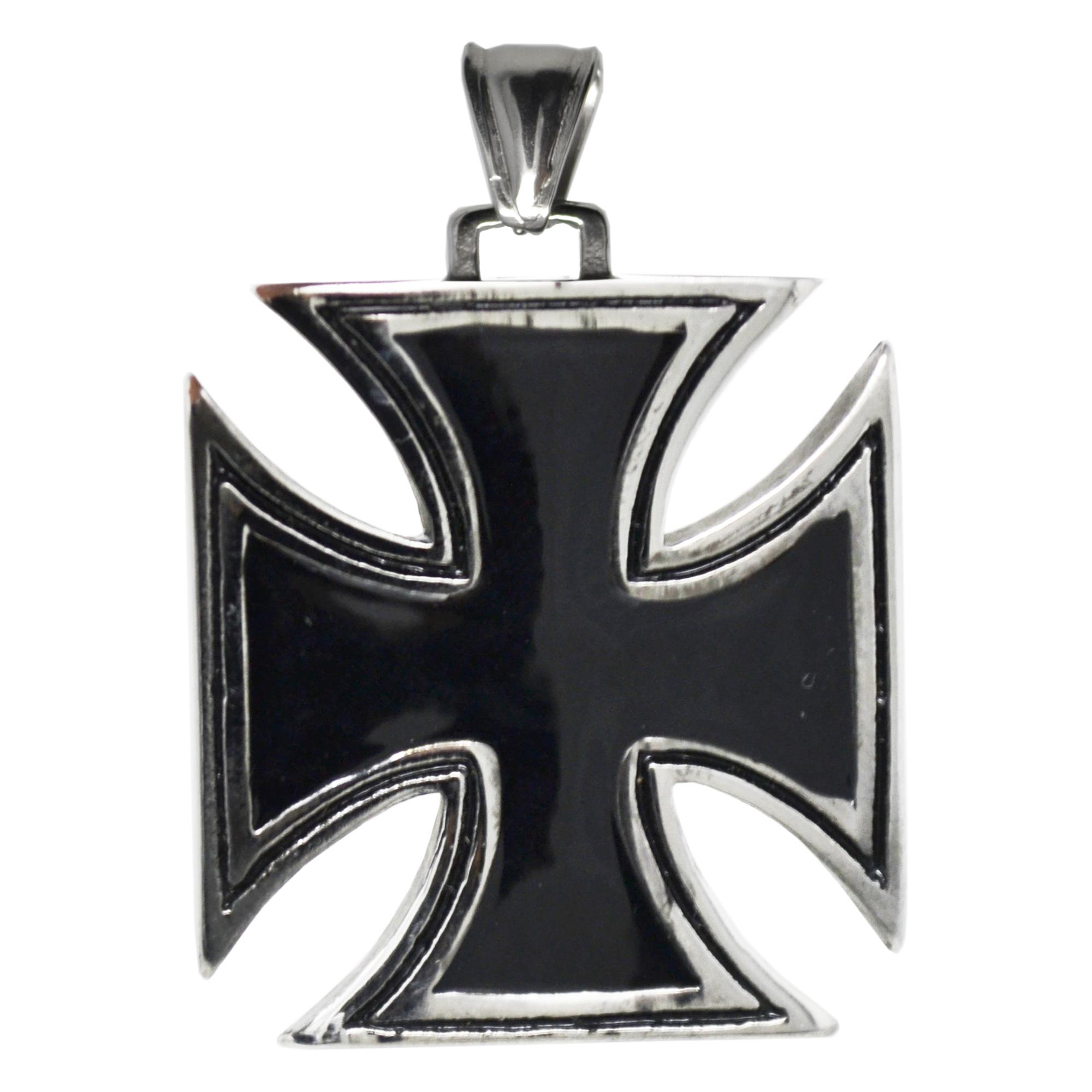 This stainless steel pendant features a medieval iron cross design.