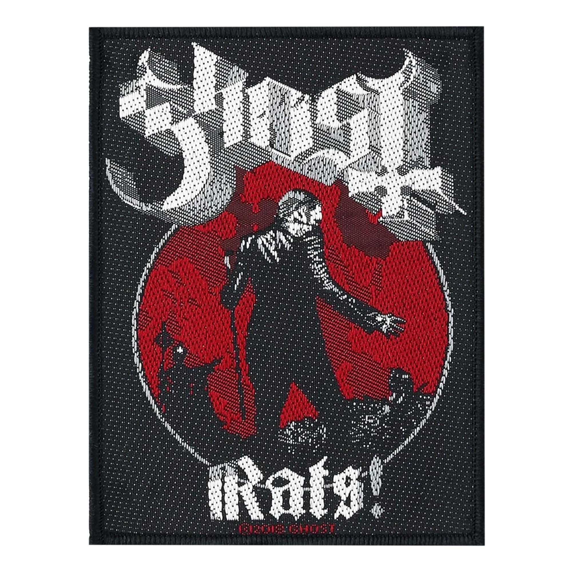 Patch features Ghost logo with Cardinal Copia facing down at the rats, and Papa Emeritus in the background pointing.