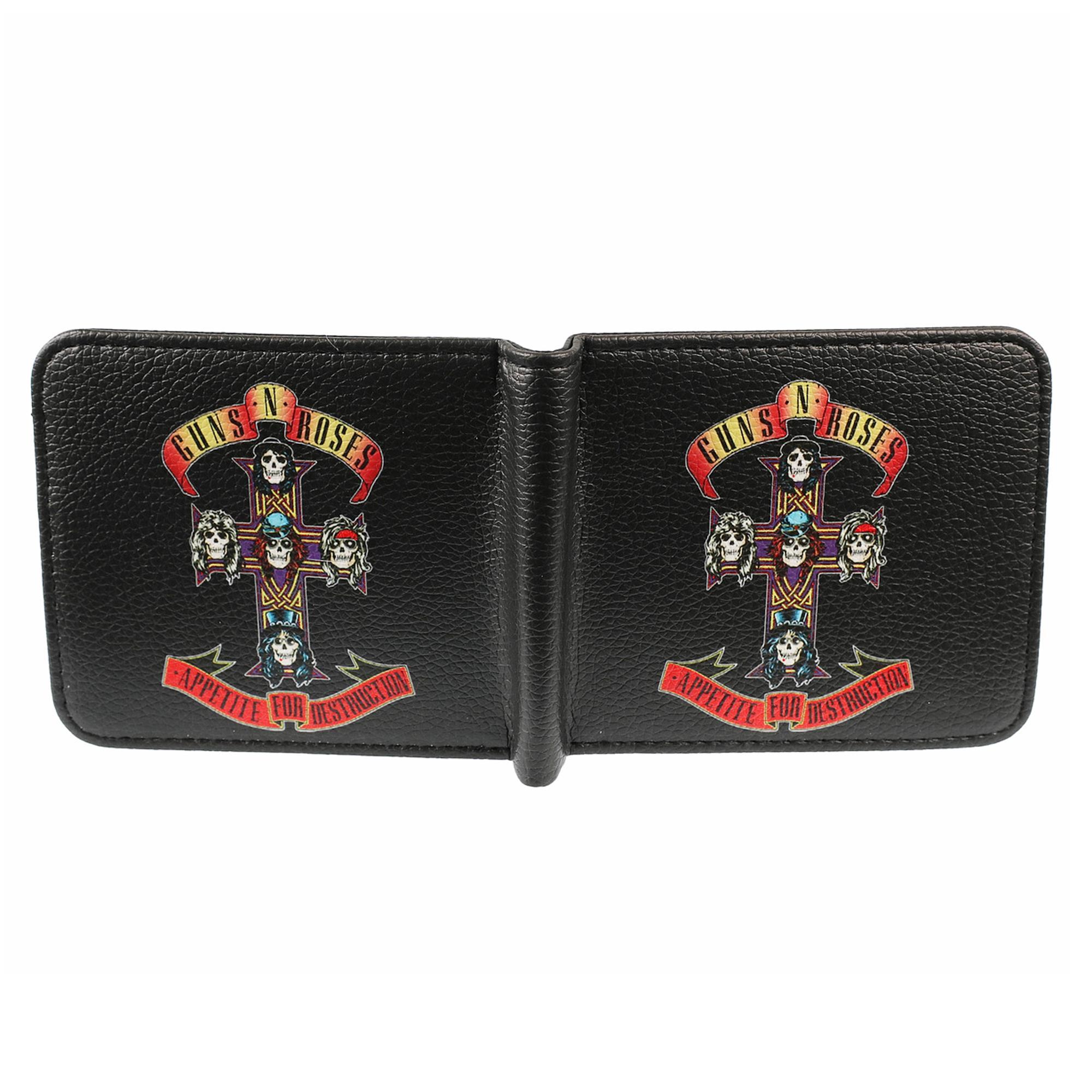 This wallet features Appetite for Destruction which is the debut studio album by American hard rock band Guns N' Roses, released by Geffen Records on July 21, 1987. It initially received little mainstream attention, and it was not until the following year that Appetite for Destruction became a commercial success