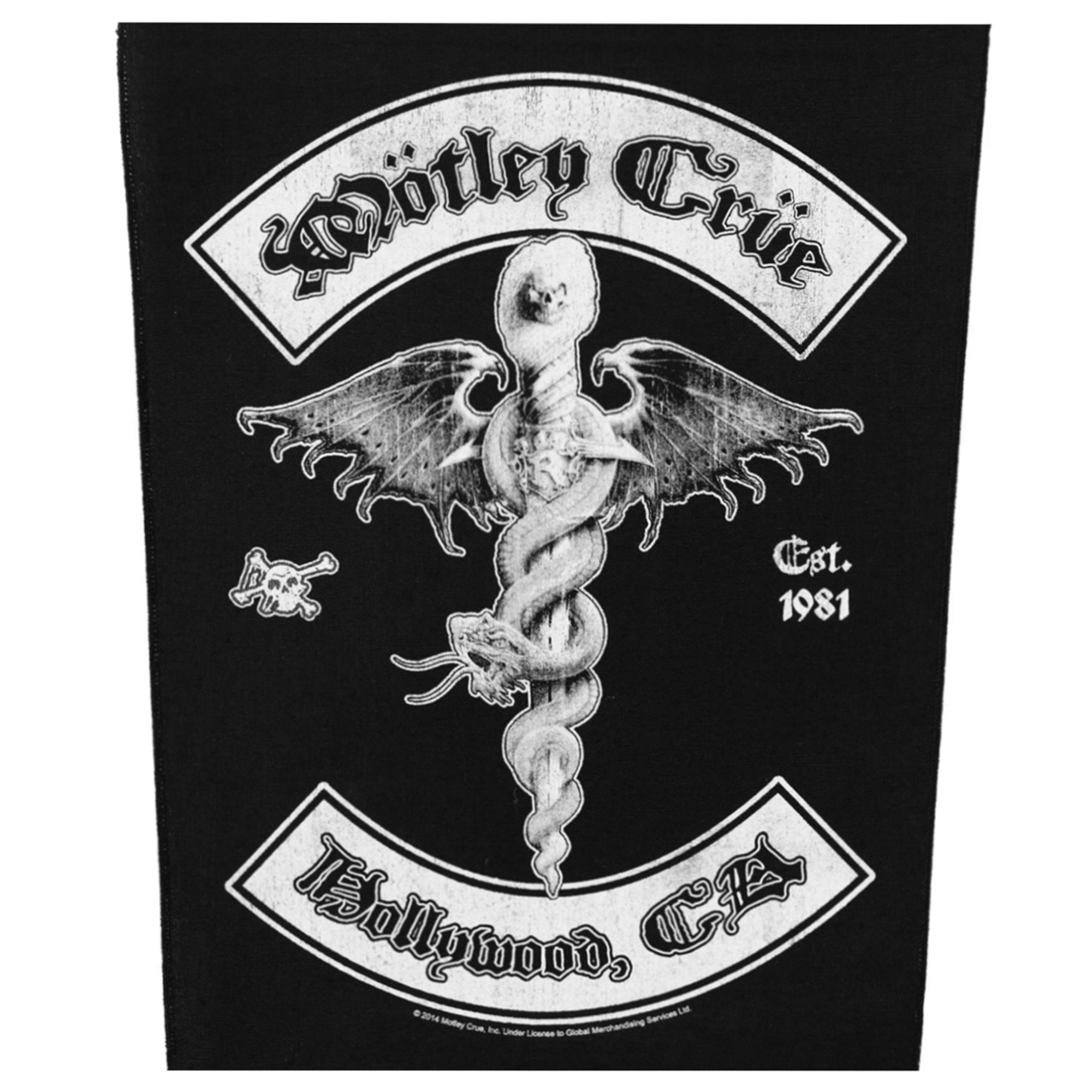 Band's logo with "Est. 1981" printed in the center. "Motley Crue" is written above and "Hollywood, CA" below.