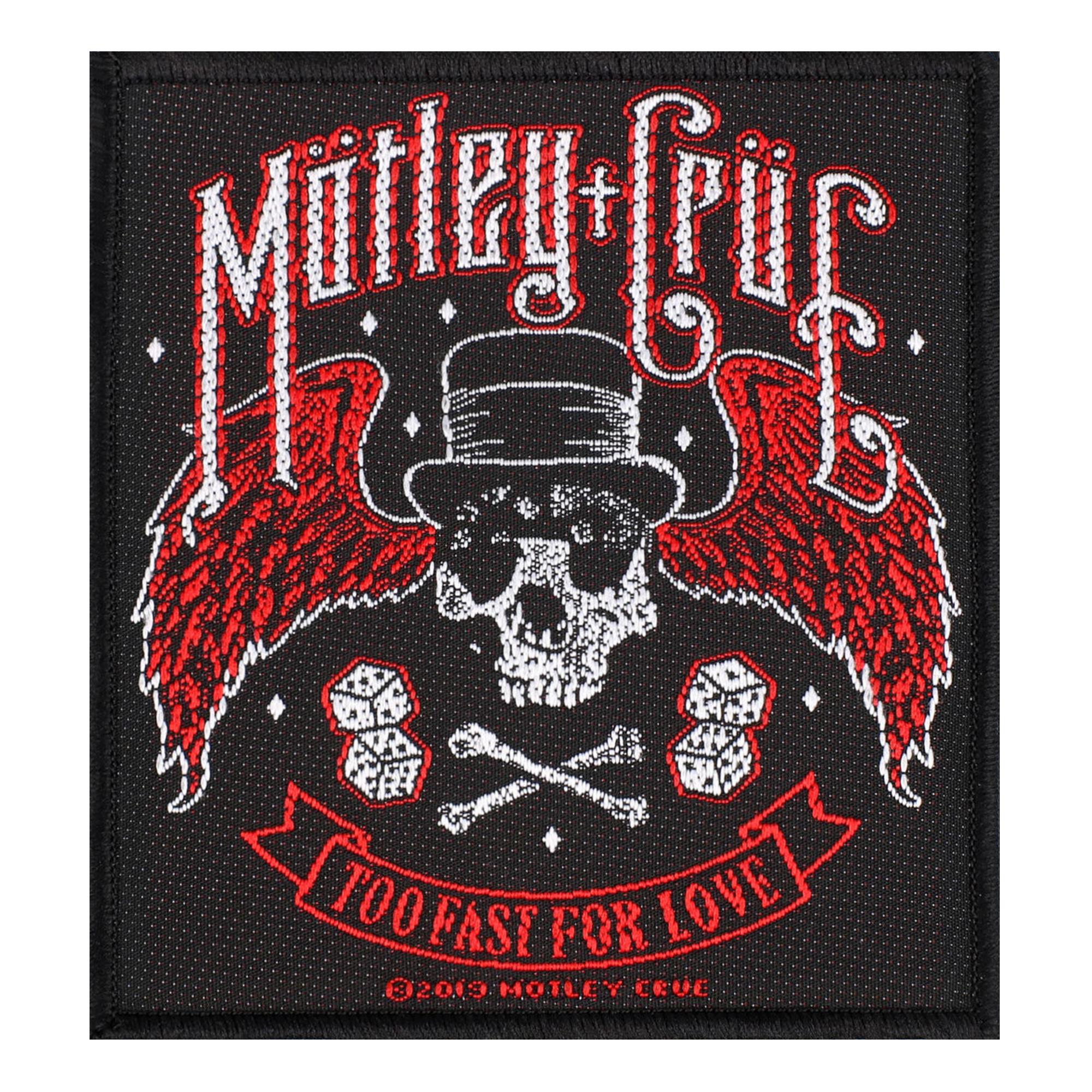 A patch with artwork inspired by Motley Crue's 1981 debut album, Too Fast For Love, originally released on the band's own record label, Leathür Records.