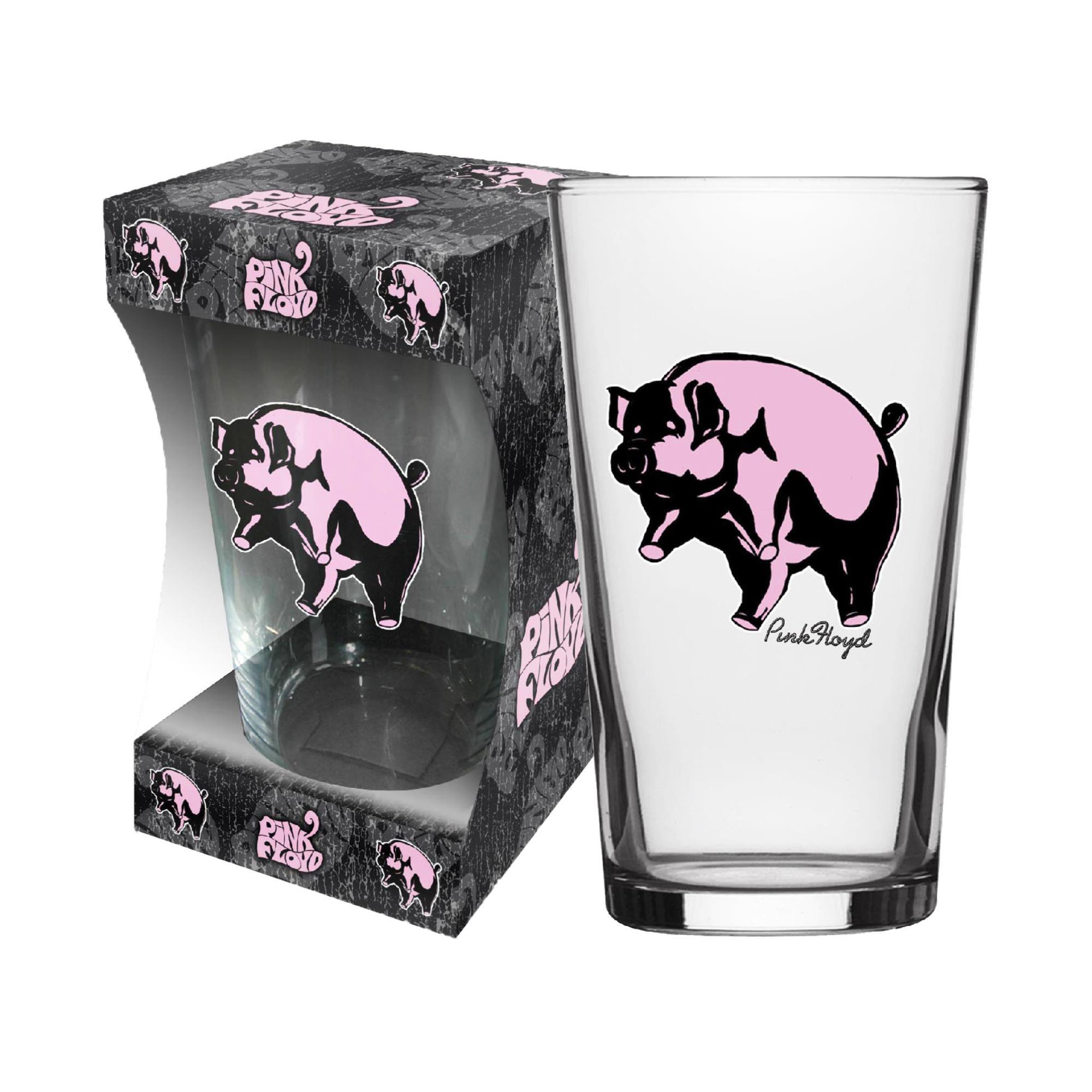 A pint glass featuring the infamous Pink Floyd flying pig! A staple of Pink Floyd's live show's and a cover star from the album, Animals, this pink pig is a crowd pleaser!