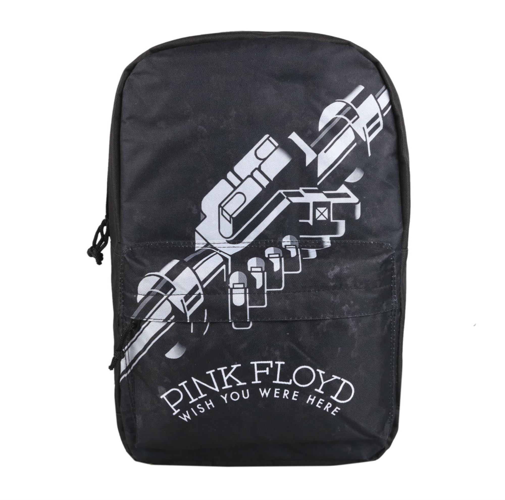 This AWESOME Pink Floyd backpack features artwork inspired by the 1975 album Wish You Were Here. Crafted with resistant polyester fabric and lining and featuring a spacious front pocket, internal divider, and adjustable padded straps.