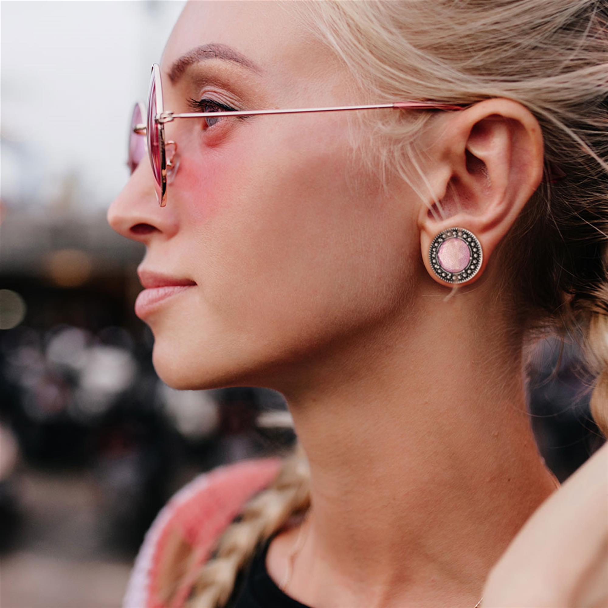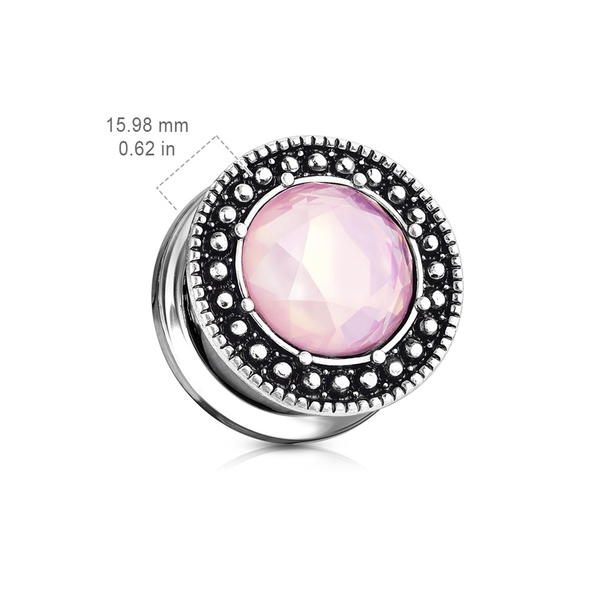Pink Stone Centered Burnish Finish Shield Front 316L Surgical Steel Screw Fit Flesh Tunnel Plug