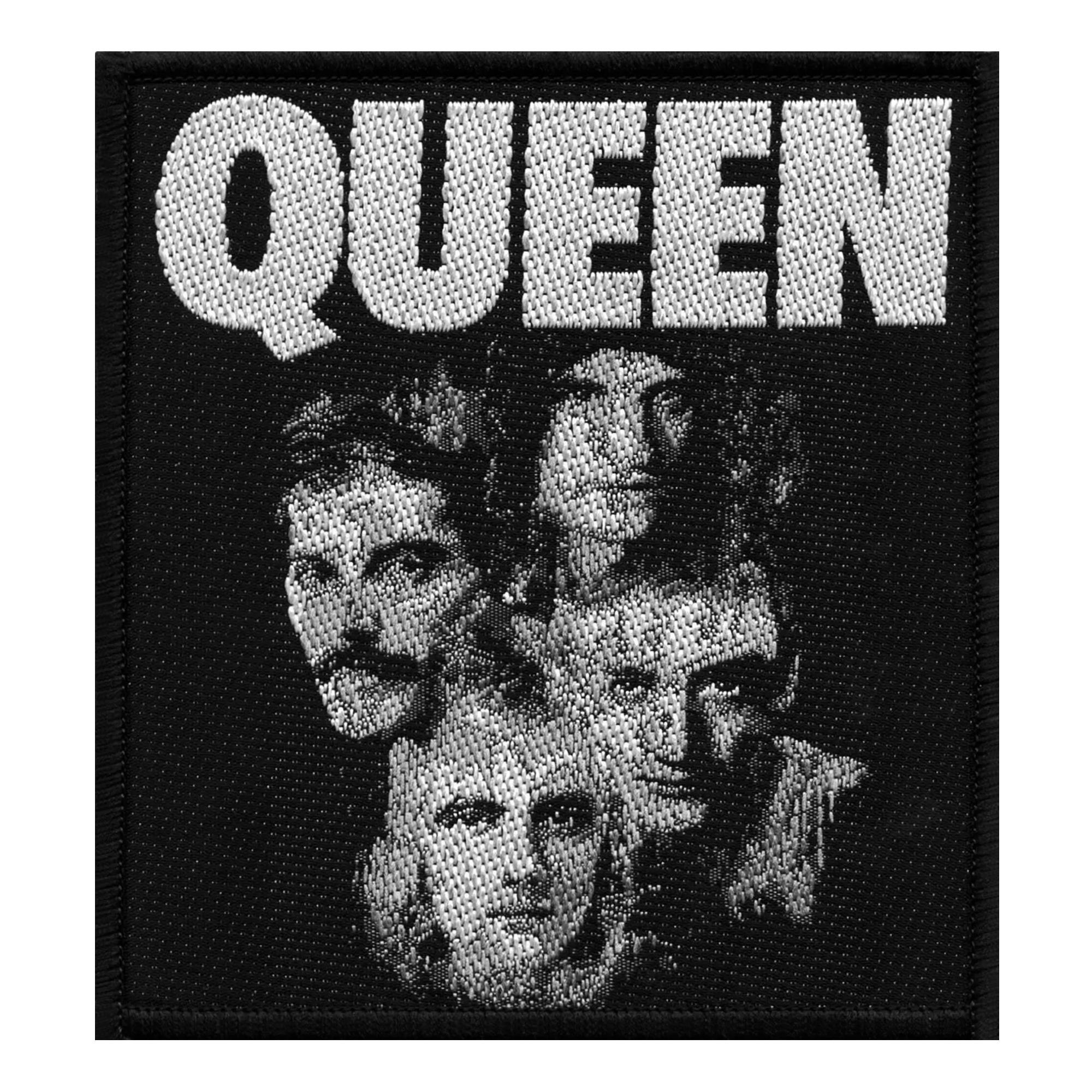 A patch featuring the faces of the Queen band members circa the 1980s. The classic lineup consisted of Freddie Mercury, Brian May, Roger Taylor, and John Deacon.