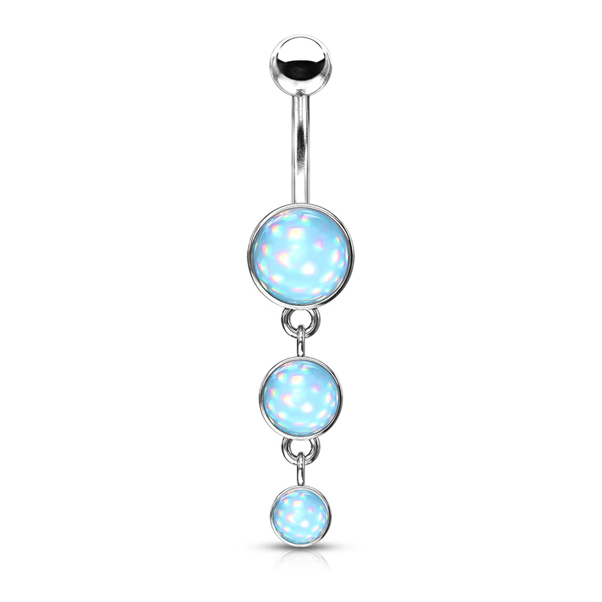 Triple Round Illuminating Stone Drop Dangle 316L Surgical Steel Navel Ring