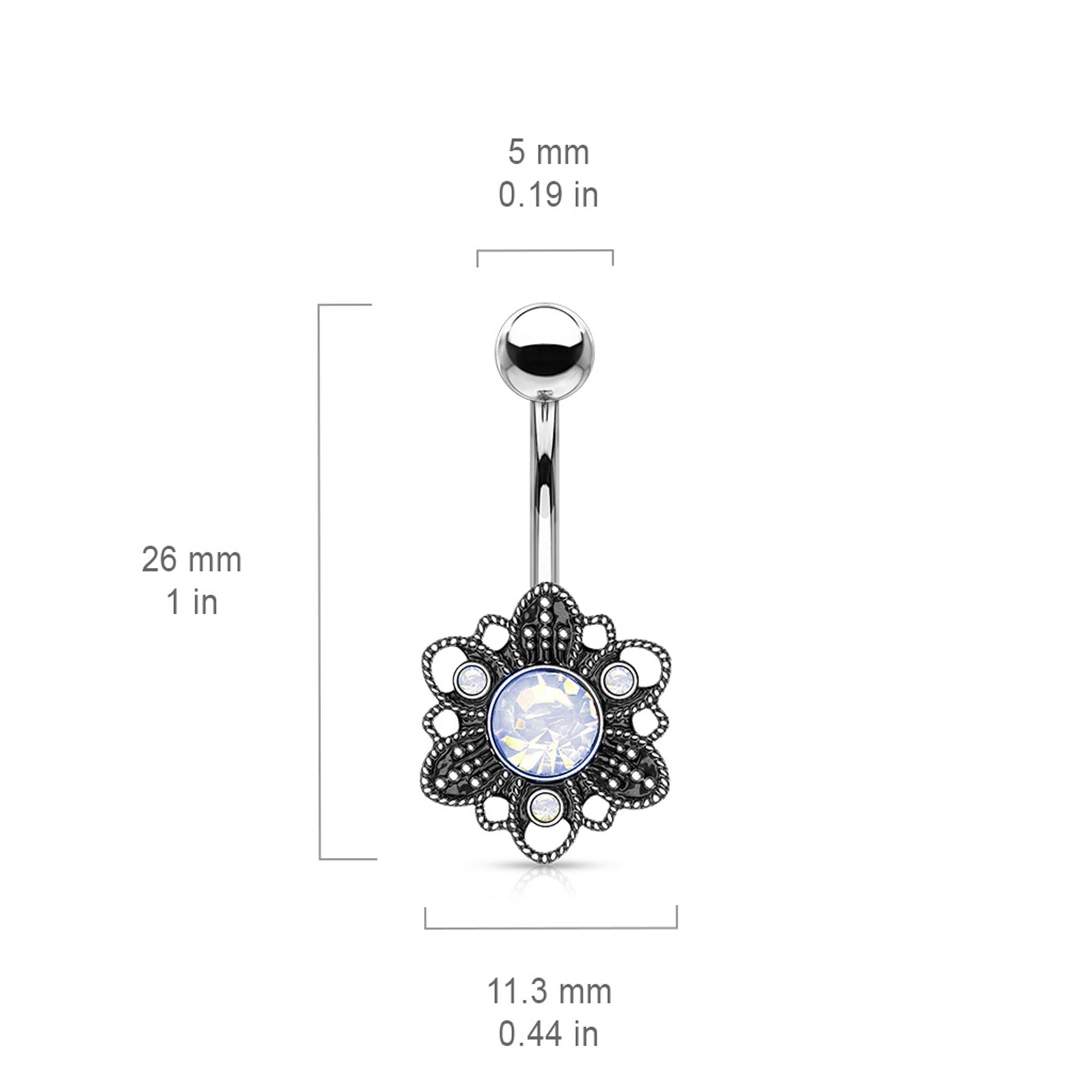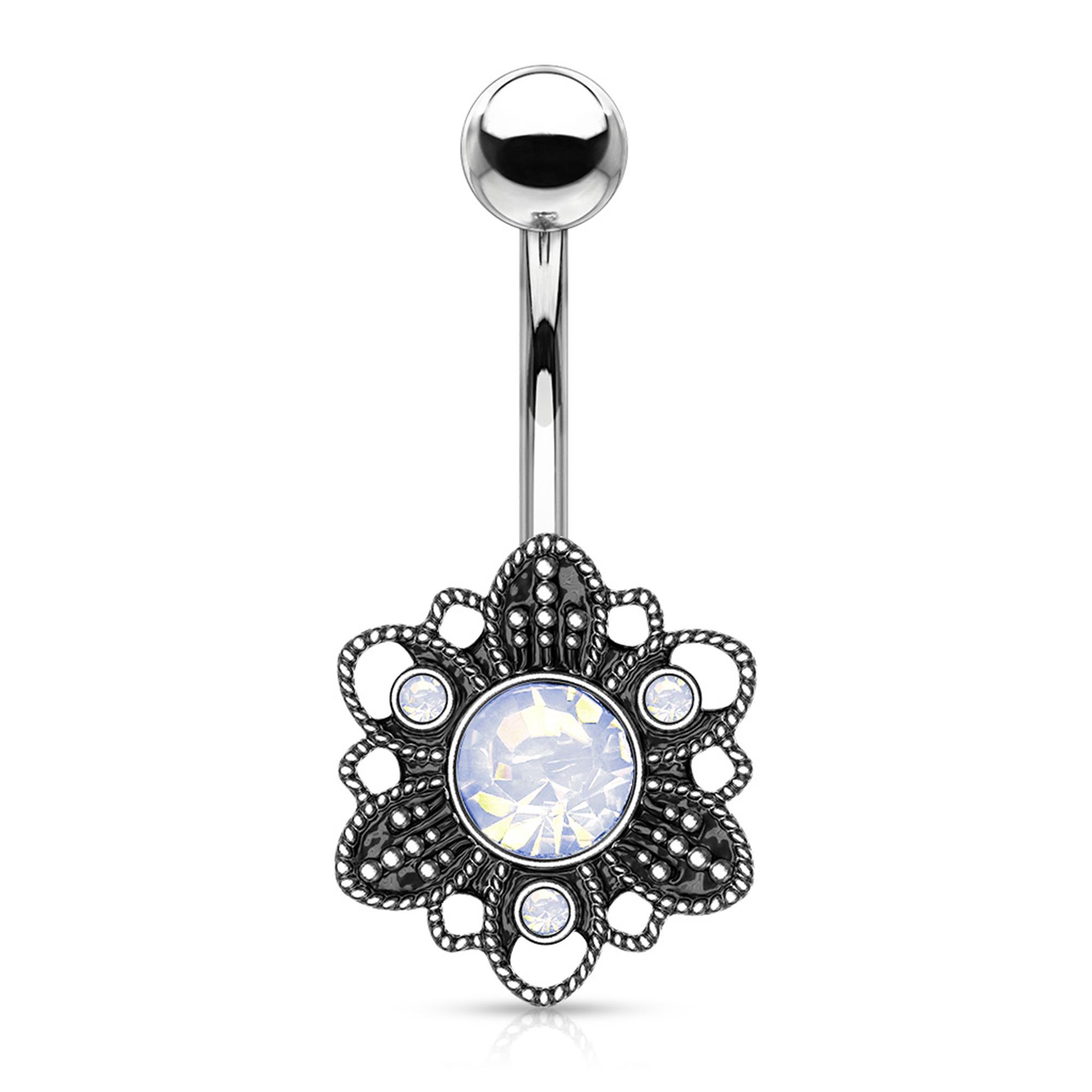 White Opalite Crystal Set Flower 316L Surgical Steel Navel Ring